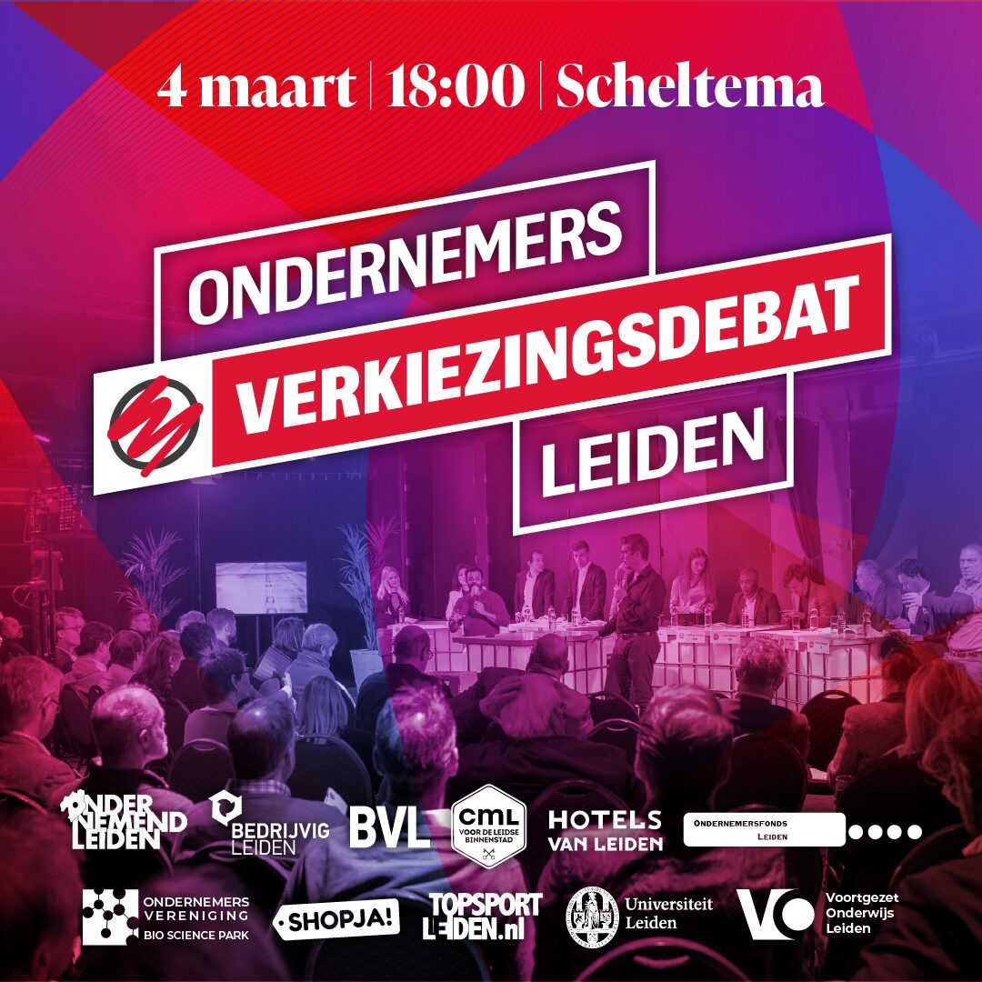 Ondernemend Leiden organiseert in aanloop naar de gemeenteraads-verkiezingen van 2026 op woensdag 4 maart het Ondernemers Verkiezingsdebat Leiden. Onder leiding van Leendert Beekman, politiek verslaggever bij BNR Nieuwsradio, en Hans Janssens, oud-voorzitter van Centrummanagement Leiden, gaan lijsttrekkers en andere kandidaten van de politieke partijen met elkaar in debat over de keuzes die nodig zijn om Leiden economisch sterk, leefbaar en toekomstbestendig te houden.